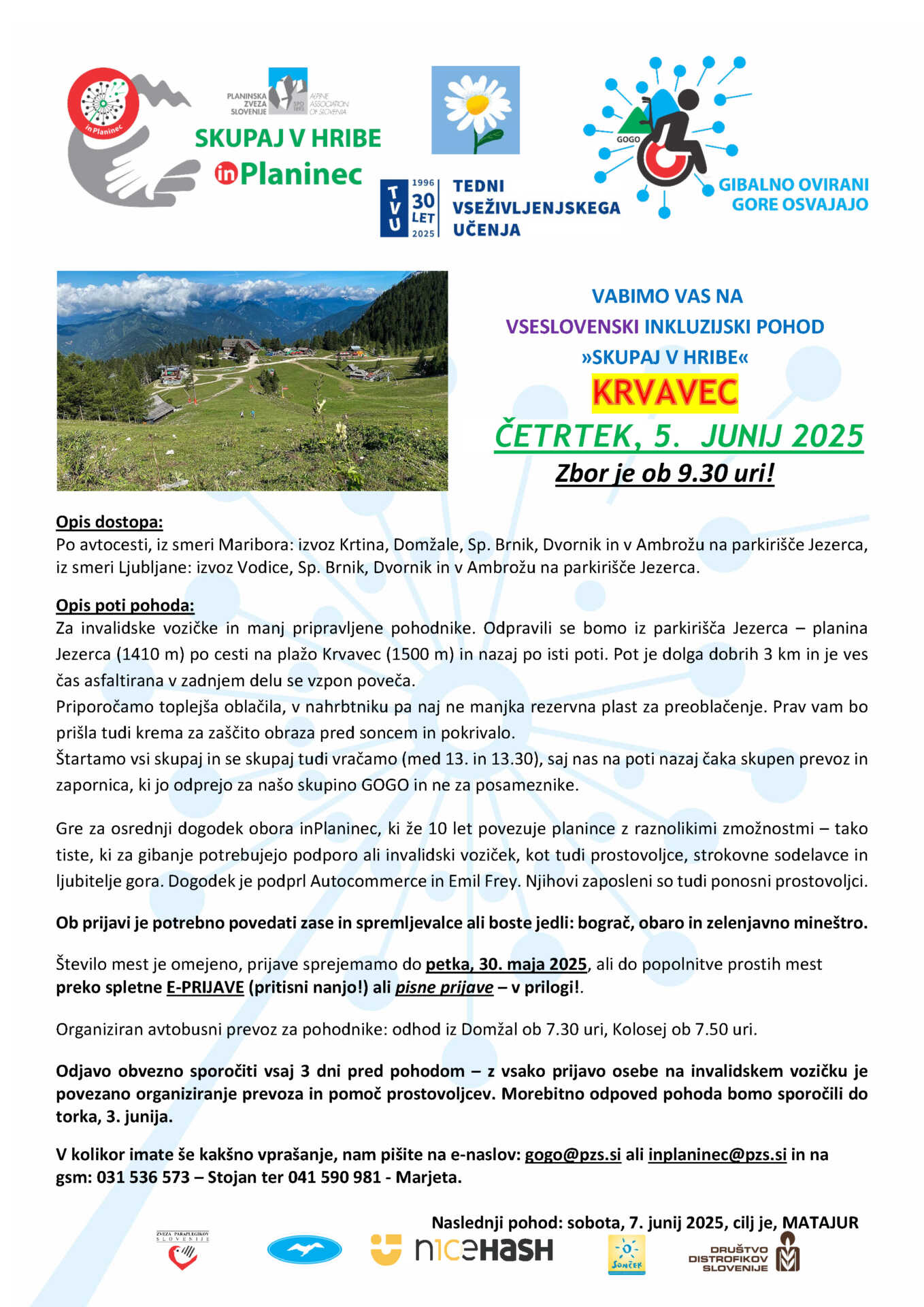 Vseslovenski inkluzijski pohod “Skupaj v hribe” – Krvavec, 5. junij 2025