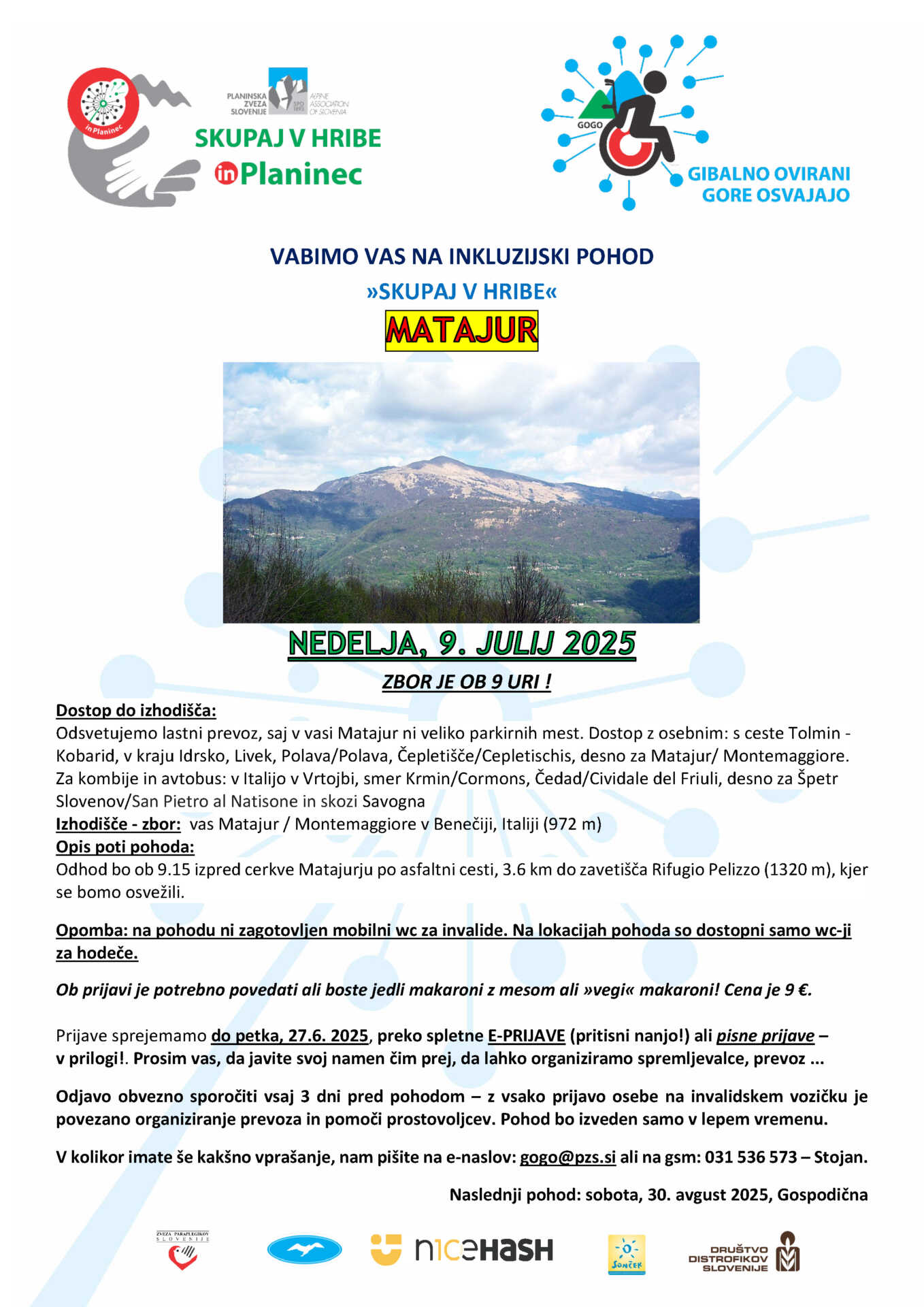 Vabilo na inkluzijski pohod “Skupaj v hribe” – Matajur