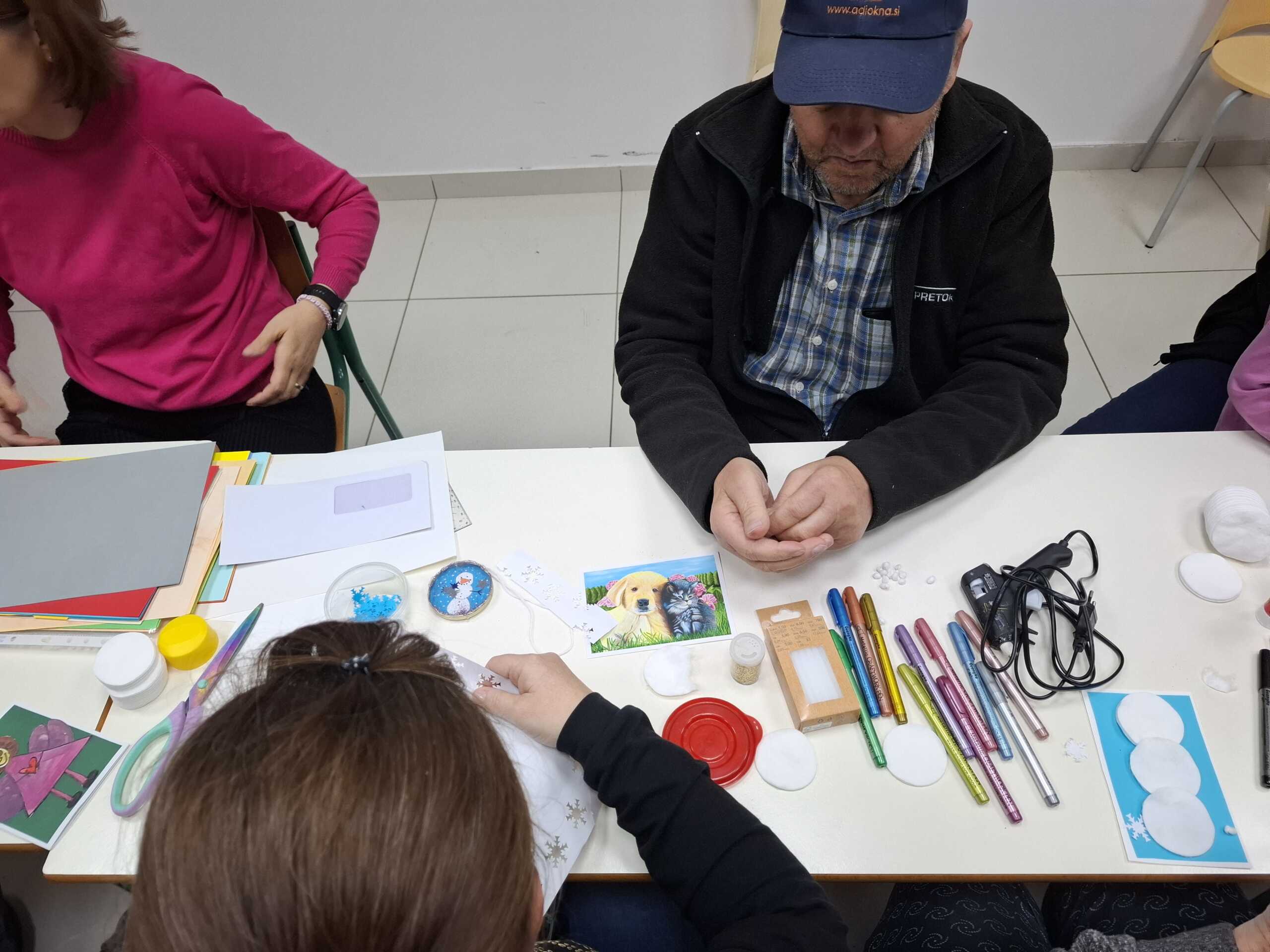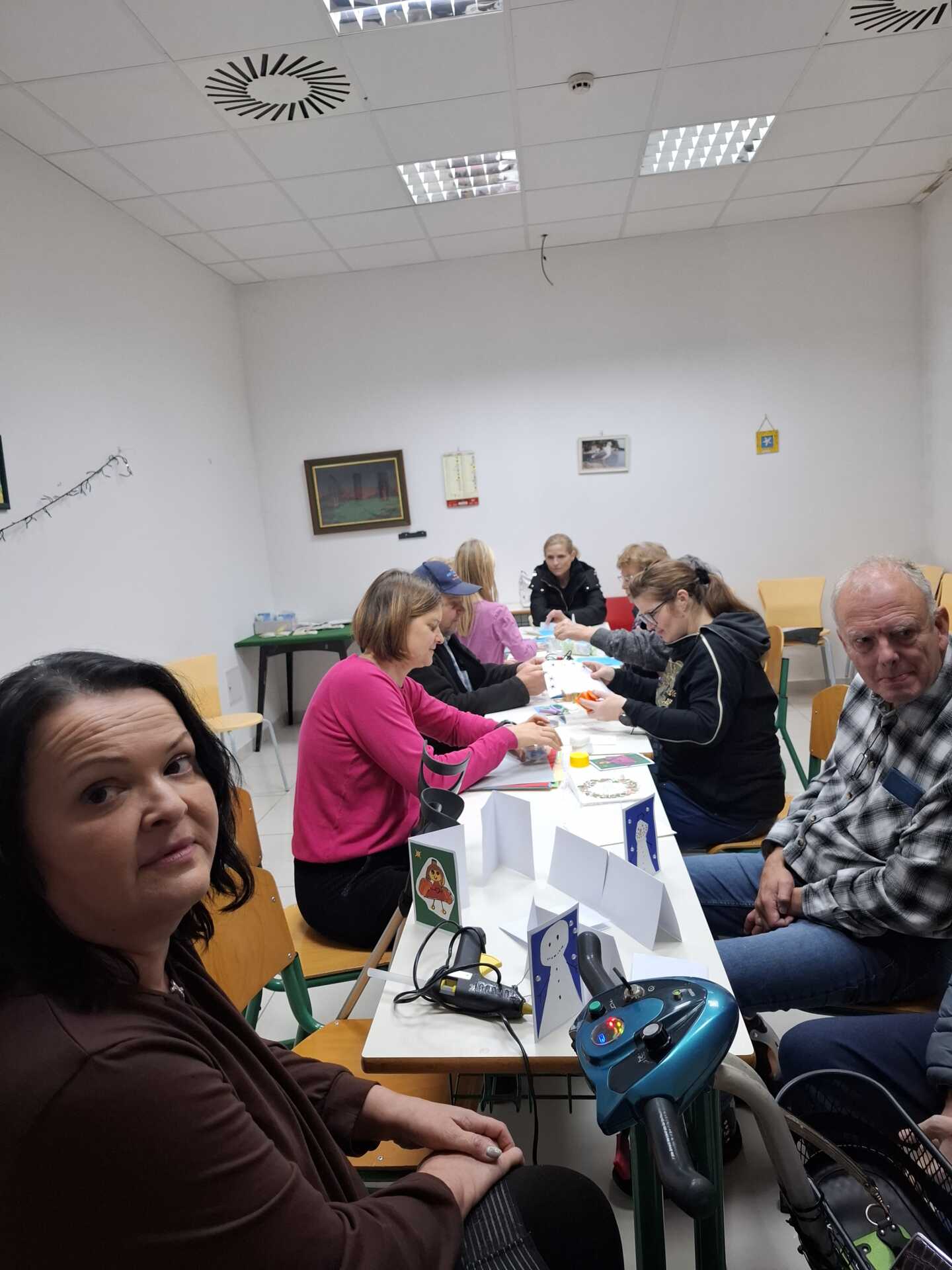 V sredo, 3. decembra, smo se v toplem in praznično okrašenem Zlatem Kotičku zbrali na prijetnem druženju, kjer nas je ves čas spremljalo pravo decembrsko vzdušje. Ob sproščenih pogovorih, smehu in dobri volji smo skupaj ustvarjali čudovite novoletne voščilnice, ki so nastale iz domišljije, ustvarjalnosti in medsebojnega sodelovanja. Te voščilnice bomo poslali članom, ki so doma in se ne morejo udeležiti naših srečanj. Da še njim pričaramo nasmeh na obraz. In tudi ta ideja se je rodila iz sodelovanja.