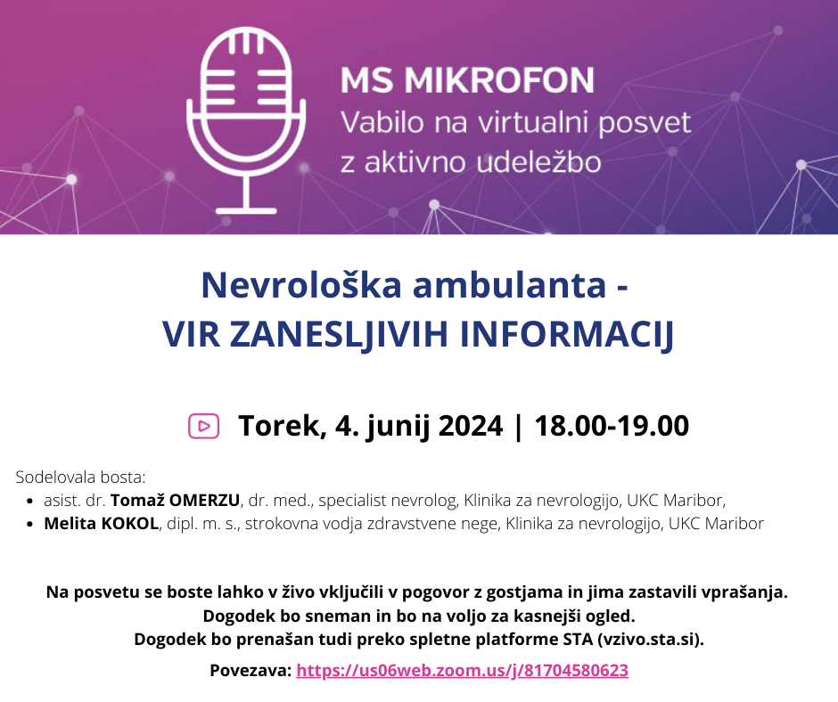 MS mikrofon: Nevrološka ambulanta – vir zanesljivih informacij