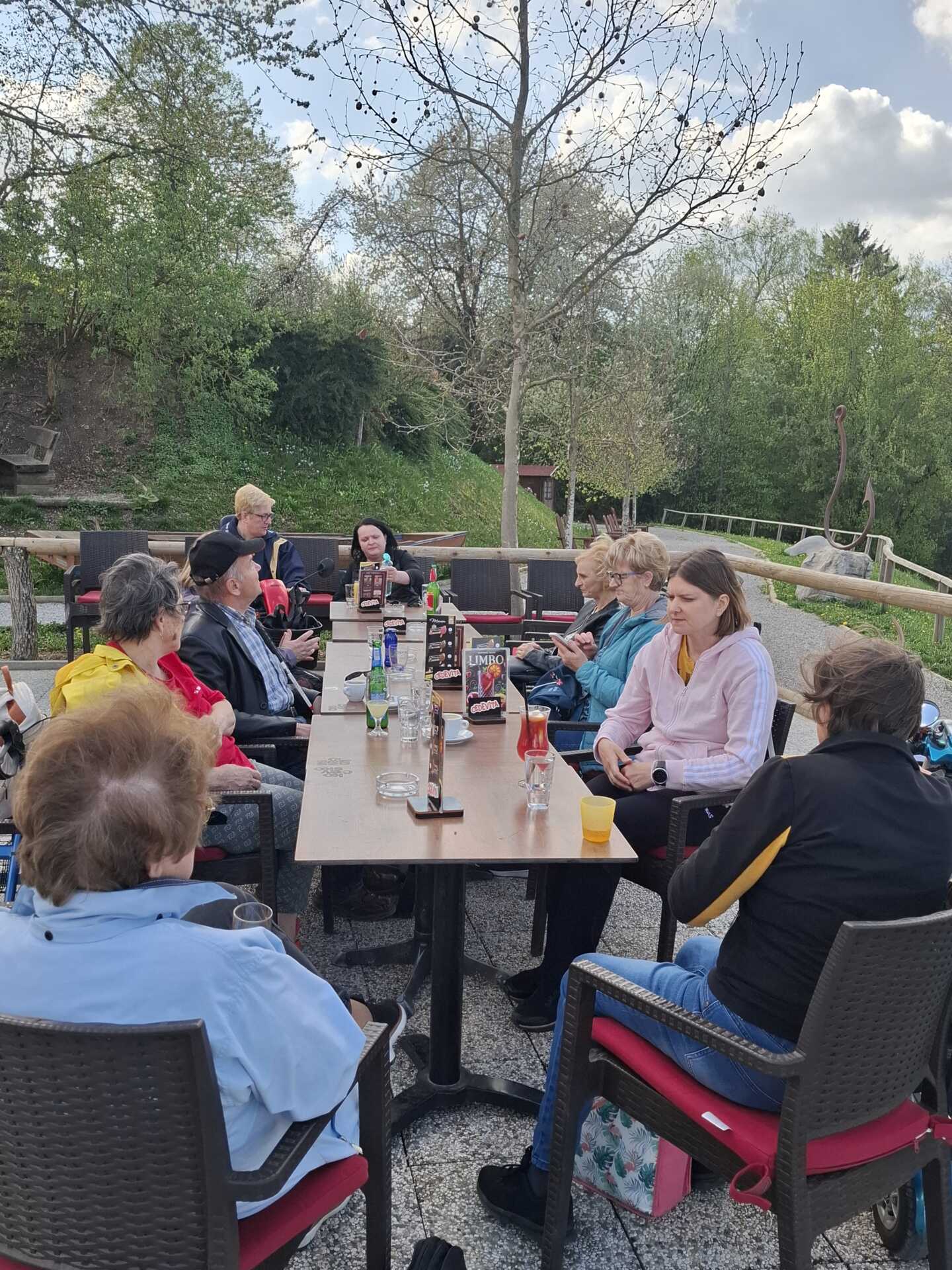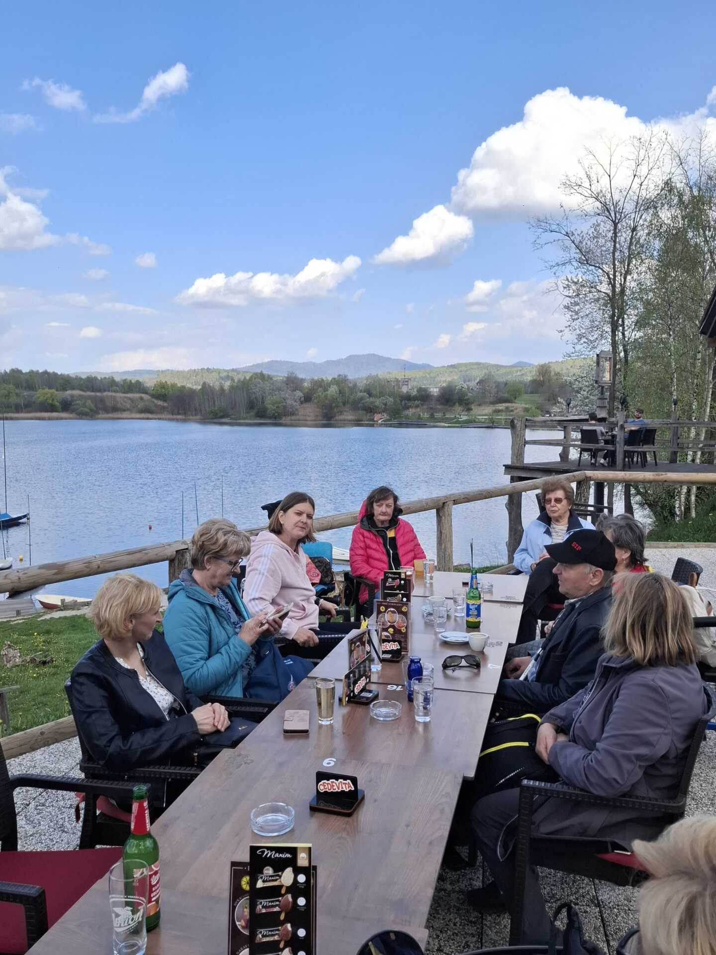 Po ogledu smo se usedli v bližnji bar, od koder se nam je odpiral čudovit razgled na jezero. V Kočevju je bilo za kakšno stopinjo hladneje kot v Grosuplju, a je bilo vreme še vedno zelo prijetno. Ob osvežitvi in dobri družbi smo si nabrali novih moči za povratek.